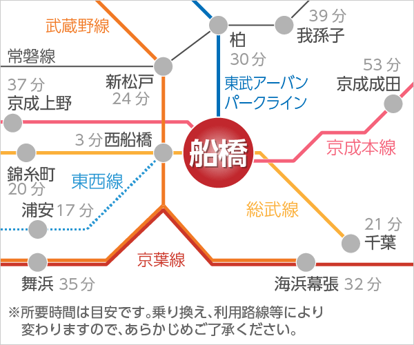 | 所在地 | 〒273-0005 千葉県船橋市本町2-6-13船橋クレールビル301 船橋駅南口徒歩8分、京成船橋駅徒歩7分 |
